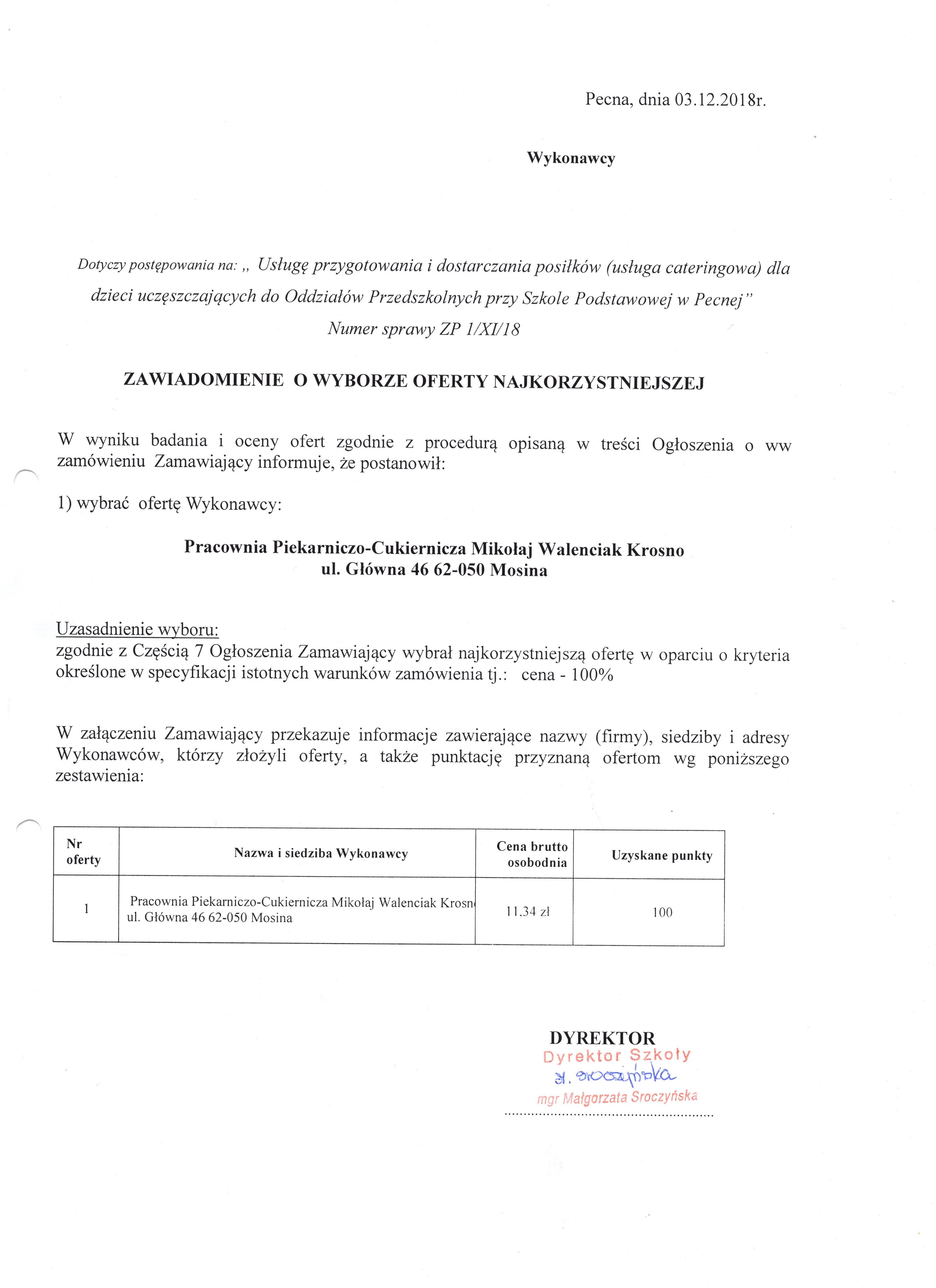 W załączeniu przedstawiamy informację o wyborze najkorzystniejszej oferty dotyczącej świadczenia usługi cateringowej dla Odzdziałów Przedszkolnych przy Szkole Podstawowej w Pecnej.